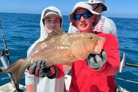 Red grouper fish near shore is going pretty well in our deepest near shore waters. We see more of those red grouper the closer we get to 100 or 120 foot of water offshore. Near shore we have to hunt through many undersized smaller red grouper to find those keeper red grouper that we’re going after. Large pieces of threadfin large strips of squid or live pin fish are a great way to try to target those bigger red grouper. But generally while fishing near shore we have to pick through and hunt for those bigger red grouper among endless smaller undersized red grouper. However this is a good problem to have showing a healthy population of red grouper that are moving into the fishery as they get bigger. However it’s our responsibility to make sure this robust number of juvenile fish remain healthy and we do our best to take good care of them as we release them and hunt for their bigger keeper sized brothers and sisters.