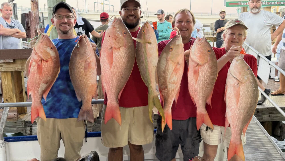 - Red Snapper: Use big dead baits like whole squid and bonita strips with heavy tackle to focus on larger fish. Prime trips include the 12-hour extreme, 39-hour, and 44-hour trips.