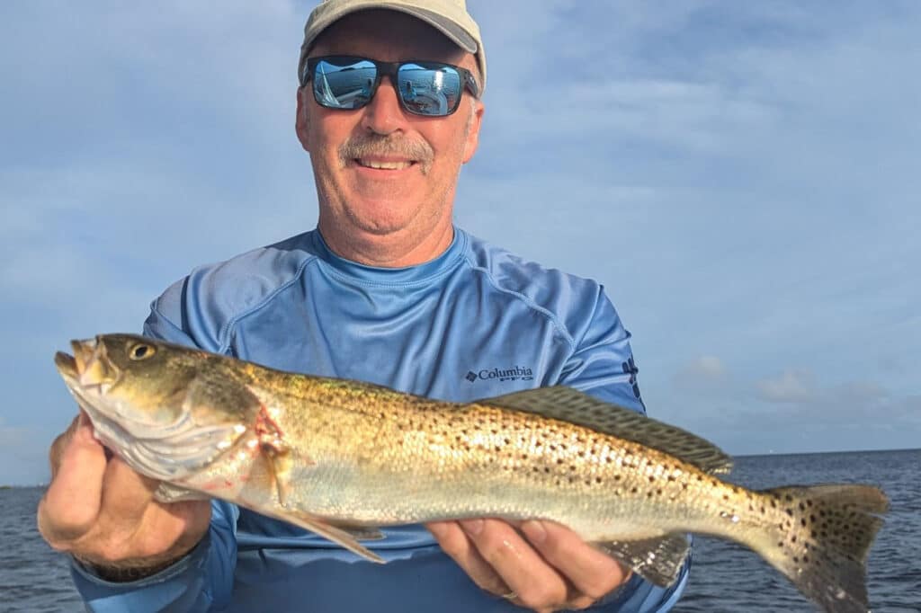 - Trout: Target them with soft plastics, white bait, and shrimp around deeper flats and potholes.
