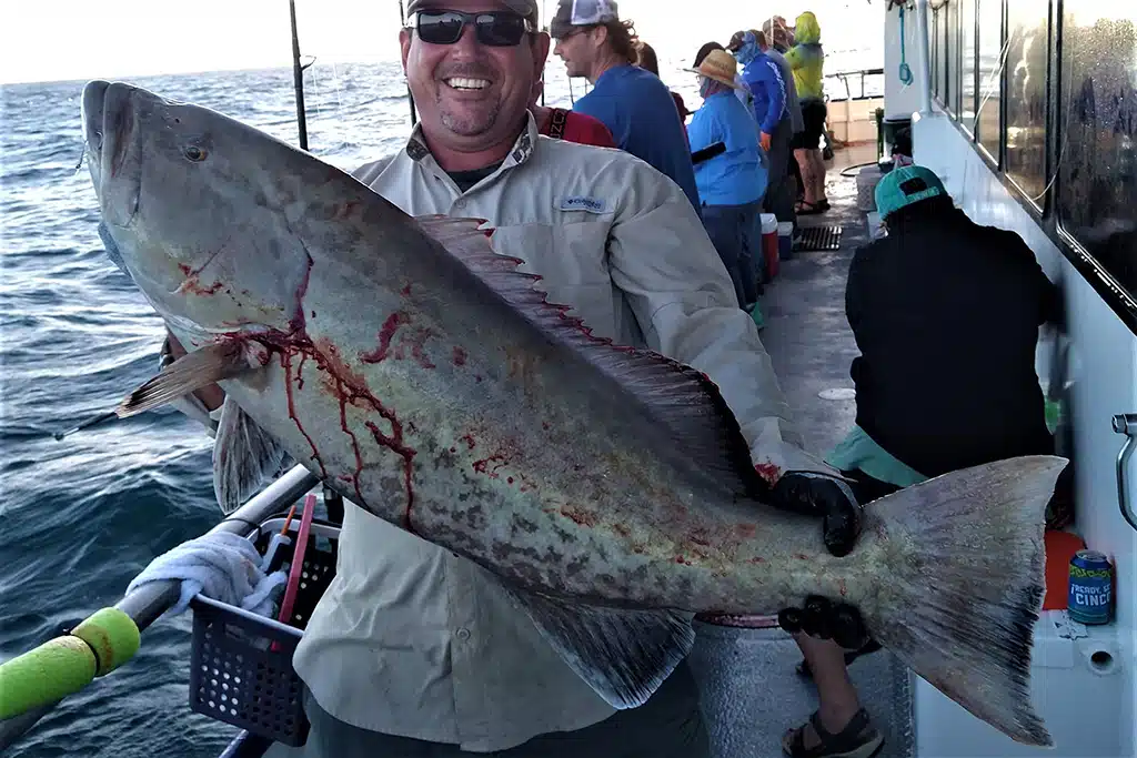 The gag grouper bite is still solid offshore. We just got back from a mid-week 39-hour trip and we found the gags biting well again for us a bit deeper than we found them back in early December. They are for sure moving around the area right now in large concentrations. This past trip we saw a soft gag grouper bite for most of the trip till we found that depth and area that they were concentrated and then nearly 20 keeper gags on one stop and another stop with a few more all in the same depth and area. We are looking forward to continuing to target that depth and starting there next week on another 39-hour adventure. Anywhere from 120-200ft is a good starting place to look for these guys and once you find them concentrated in a depth zone continue to work that area and you will find them in good numbers. Big live baits are still working best with 60lb test for the best bites but 80lb test to be safe. We caught a few big dogs this last trip as we were fishing deeper so starting with 80lb test is wise and if the bite is slow you can drop to 60lb. The biggest gags were caught on what we call ‘half day baits’ where guests do our 5-hour half day prior to our 39 hour to load up on grey snapper or white grunts, big squirrelfish, lizard fish and other near shore baits. They then take those baits offshore for bigger fish. We also continue to see a solid bite of gags on dead bait too.