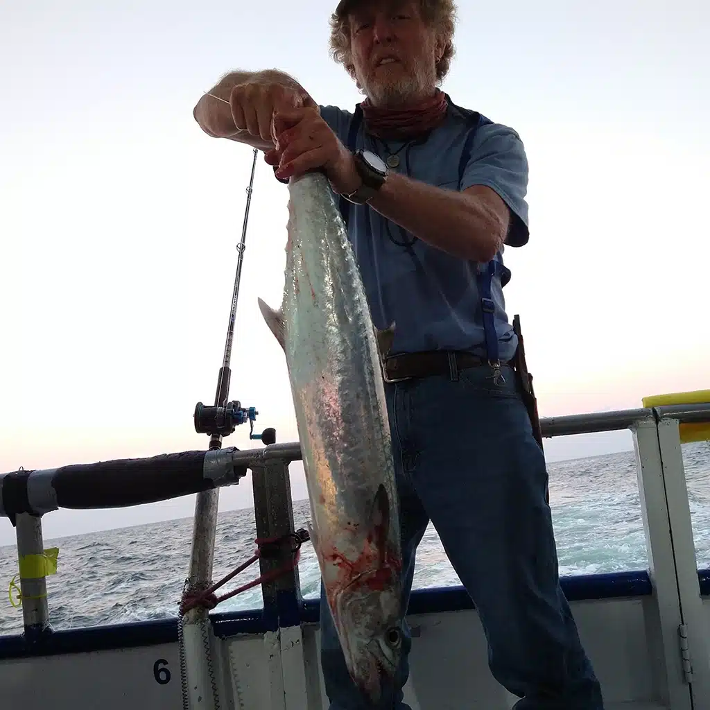 Kingfish are around near shore this past week once again. We saw a handful of kingfish caught trolling in and out on our trips mostly on simple planners and spoons around 30-50ft of water around those crab trap buoys. They are cruising areas of hard bottom where the bait is present, and those crab traps are always on hard bottom and their buoys and lines to the trap become great areas to hold the bait the kingfish cruise around looking for. Often the crab trap lines are a great area to work when looking for the kingfish if you can’t find the birds working a big school of bait.