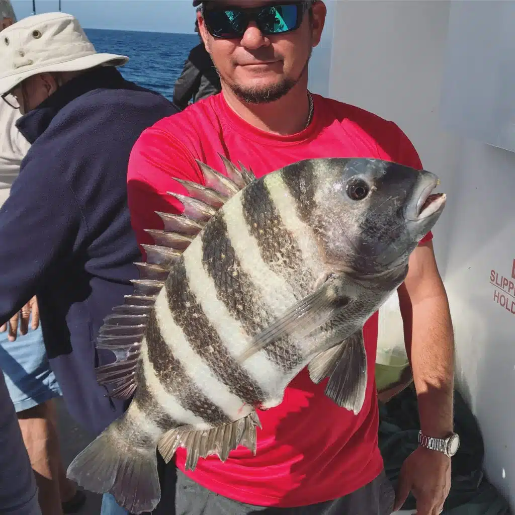 Near shore- Huge sheepshead were caught this past week aboard our 5 hour half day fishing trip in depths of 30-50ft of water. Those sheepshead are out on the near shore rock piles, ledges, reefs and wrecks in large spawning aggregations and you can luck into finding some real big girls while fishing for the hogfish, mangroves and other snapper near shore using live shrimp or fiddler crabs for bait. The hogfish were biting well for us this week on all our trips fishing near shore especially the ten hour all days and private fishing charters aboard the HUB and Flying HUB 2. Those hogfish love live shrimp, fiddlers, or rock shrimp on lighter 20-30lb floro carbon either using a jig head, Nekid ball jig or knocker rig style set up on a 4000-5000 series spinning reel with 20-30lb braid and a 15-20ft piece of that 20-30lb floro with a sensitive but strong spinning rod in the 17-20lb range with fast action. The hogfish are being caught anywhere from 40-70ft of water typically this past week. The lane snapper were biting well this past week on cut threadfins or the live shrimp in around 60-90 feet of water. We are seeing a few cobia in the near shore waters but much more commonly spotted in our offshore waters right now.