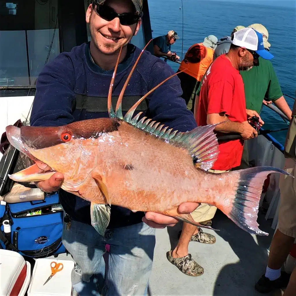 Near shore- The hogfish, mangrove snapper and sheepshead are the big news in the near shore waters with a really good bite of hogfish taking the lead in this week’s fishing report. This past Tuesday’s 10 hour all day had a total of eighteen keeper hogfish that’s how hot the bite has been for hogfish this past week. Plus, our HUB private fishing charters have been tearing up the hogfish as well this past week. They love the live shrimp on a 1oz knocker rig with a 4ot hook or a 1oz Nekid ball jig both with pieces of live shrimp. The mangrove snapper have also been biting well for us near shore on the double snell rig with a chunk of threadfin or the live shrimp when targeting hogfish. On a recent ten hour we had over 75 nice mangrove snapper brought into the boat using the double snell thread fin method. The sheepshead have been a bonus as well, not as common as the hogfish and mangroves have been but this is the time of year they spend spawning above the near shore artificial reefs and rock piles and we catch them floating down the live shrimp targeting hogfish most commonly. Plus, were seeing good action on the lane snapper as of late too with plenty of them coming into the docks as well on small chunks of squid or live shrimp. As always the grey snapper or white grunt bite along with the porgies has been consistent when the weather has been nice so it’s a great time to get near shore and do some catching!