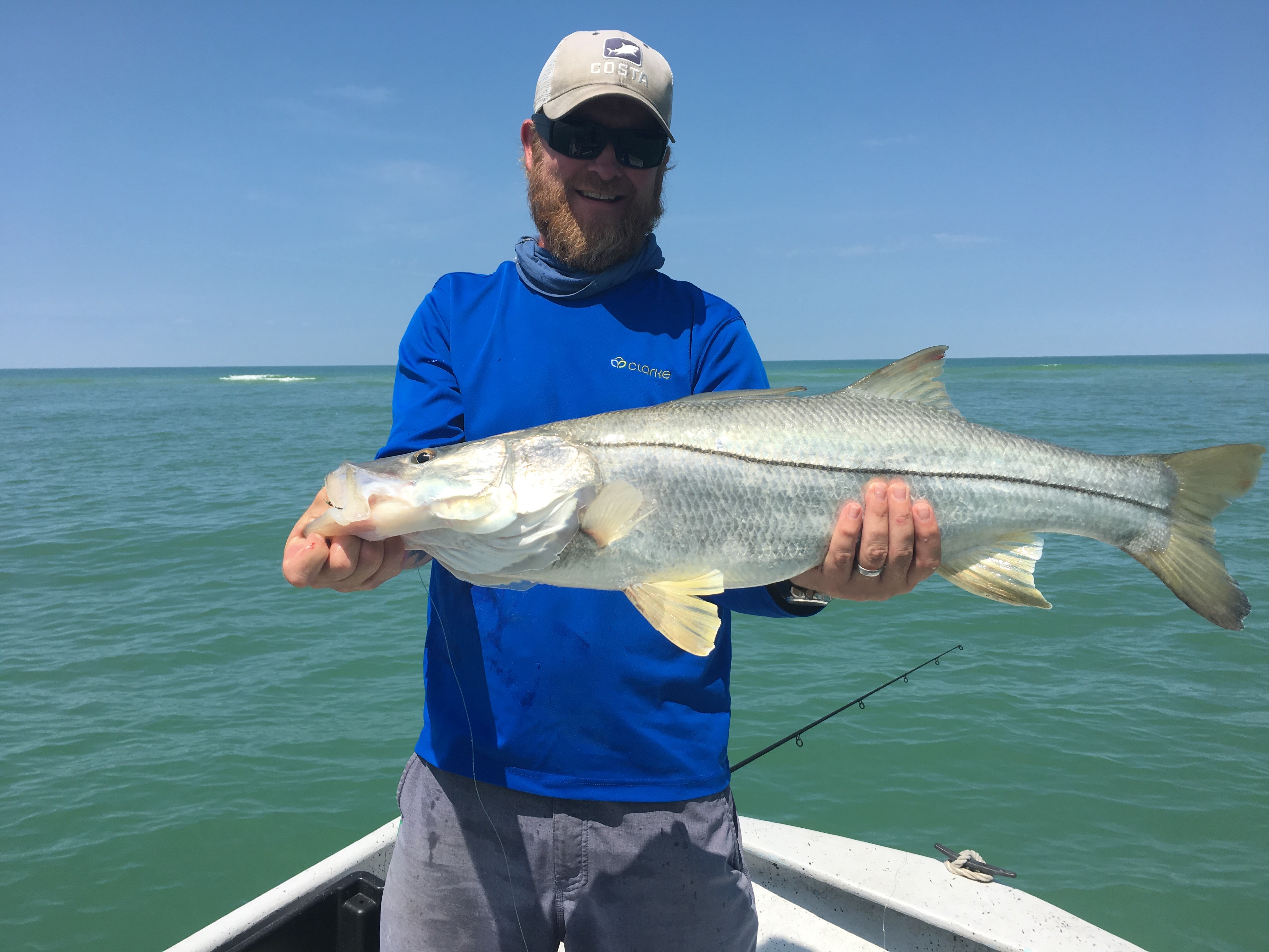Inshore– The snook are loading up the passes right now from Pass a grille, to Blinds Pass to Johns pass the snook are choking up in the passes gearing up or ‘staging’ for their summertime near shore and beaches spawn. This week in the wee hours of the mornings you can spot huge schools of school hanging around the dock lights inside the passes. Thursday morning at Hubbard’s Marina as the 39-hour backed into the dock around 5:30am it sent white bait and snook in a frenzy as the prop wash stirred up the calm and still waters inside the pass and along the dock lines. John Sasser and Angelo Rivera were fishing this past week in very early morning well before sunrise working flairhawk style lures in the passes catching some nice snook. Working these lures on a heavy spinning rod with a reel with serious drag capacity and the capacity to hold plenty of 50-60lb braid is the best idea. Using a 60lb floro leader tied onto the end of the braid then to the lure is the best method for utilizing theses unique lures and the pink and chartreuse or just Chartreuse colors seem to be the high producers lately in the 1oz range. You want to cast these long around the jetties, piers and passes and slowly retrieve them over the bottom and then you will feel the thud of a lifetime as you hook up to one of these massive snook. Keep in mind however, snook, redfish and trout are all catch and release in our area until end of May 2020 so be sure to release them quickly and efficiently reducing any possible damage these fish may suffer. The trout bite inside the pass and along the beaches continues to impress with many speckled trout following the flushing bait schools out of the pass to feed while they can. Mostly on the deep water drop offs inside the passes and the sandy gulleys that parallel the beaches and Live shrimp, or a DOA shrimp is a great bait to go after these speckled sea trout. Redfish or red drum have been a little fewer and further between around the pass lately, but we are seeing some caught at night around the dock lights in the pass right along the bottom slow retrieving soft plastic swim baits or zman style soft plastics with a light jig head. The mackerel are still around the passes and on the beaches a bit too but they are definitely starting to thin out in the Johns Pass area as the waters continue to warm up and clear up. Tarpon are showing up in droves inside and around the passes eating ladyfish, big pass crabs, and even finger mullet as they flush through the passes. The big full moon tides this weekend should have the tarpon feeding very well this weekend as the big hill tides flush out all their natural prey from the passes. Early morning or around sunset at the mouth of the passes is a great place to target these ‘silver kings’ or drifting these live baits free lined around your boat as you drift through the pass is a great way to target them too! Tarpon seem to feed well at night too, many local guys catch them while targeting sharks when they aren’t using heavy wire or shark gear that is over sized and big dead baits on the bottom. They are opportunistic and they won’t shy away from big chunks of dead ladyfish, mullet and even fish carcasses each year we see a few of them hooked around our boats at Hubbard’s Marina when using carcasses for bait for the summertime lazy snook.