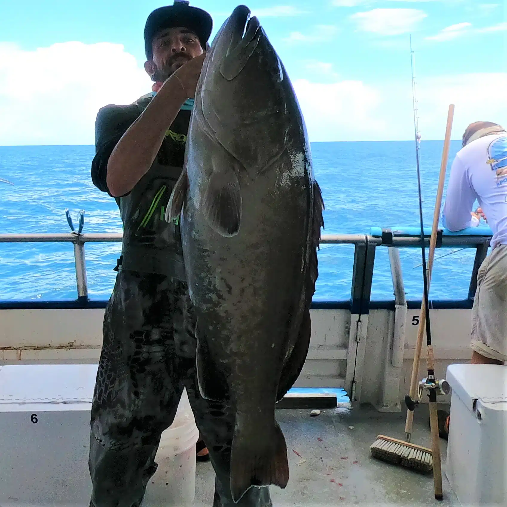 Offshore – Yet again the best action we are seeing is out deep! We have another week of red snapper fishing ahead before they are closed for the year, unless an extension gets announced. Due to this, we are still fishing around 150-200ft of water or more nearly all the time on our 12 hour extreme trips, 39 hour long range overnight trips and our long range private fishing charters aboard the Flying HUB 1 and Flying HUB 2. This week we have nailed some truly trophy fish like a nearly 44lb gag grouper and a beautiful sailfish we caught and released and a handful of nearly 20lb red snapper too. The big mangrove snapper have been biting well but they are a little hit and miss right  now, depending on if the weather allows us the opportunities to dial in on the mangroves. If its not the current holding us back its been stormy, rainy and windy weather holding us back from getting the mangrove bite fired up. However, early this week on the Sunday 39 hour private charter they had the great weather we needed and some very experienced anglers on board and they brought home a mess of nice mangrove snapper in the 7,8 and even 9lb range with the jackpot mangrove nearly 10lbs.  The sailfish we caught and released was caught by accident really aboard a Flying HUB 1 private fishing charter by Capt Joe Drew. He was dropping down a threadfin while targeting fat red grouper and red snapper around 170ish foot of water and as soon as it hit bottom on his first stop of the trip he thought he’d hooked a big grouper since it was taking a run for the bottom and he was using big grouper tackle so he put the heat on the fish cranking like a mad man and lifting as hard as he could. Once he got the fish off the bottom he thought he had a 20+lb red grouper coming up when all of a sudden it took off on a huge run. Then on the other side of the boat a guest yells ‘sailfish’ as we could see it tail walking on the surface 50-60yards from the boat. He quickly moved to the opposite side of the boat under the anchor line and realized he had hooked a beautiful fish instead of what he now thought was a big bonita. Once he got clear of the anchor line the line was slack and for a second he thought he had lost the fish due to a spit hook. Luckily, he didn’t give up reeling in the slack as quickly as his big 9ot would go and all of a sudden as the line came back tight the fish appeared at the side of the boat almost to say ‘he you win, lets end this early and get me back in the water’. They were able to hoist him into the boat for a quick photo and hook release and get him back in the water expeditiously. Since it was such a very quick fight and expert hook release while taking a photo that fish swam off very strong and even did a few free jumps as if to say ‘thanks for getting be back quickly’ before disappearing out to the west. The nearly 44lb gag was 43lbs and change caught on the 39 hour long range overnight trip early this week. The gag bite prior to the full moon mid July was very good and then it slacked off a bit around the moon and now it seems to be heating back up for us out deep closer to the 200ft mark. This huge gag was one of many caught aboard this particular 39 hour fishing trip. Andrew Campos was the skilled and very lucky angler to boat this monster gag grouper using a slow pitch jig on a crazy ultra light jigging rod with only 30lb test and a very small sized reel! Crazy catch for sure on such a unique set up but that’s what these jig fisherman use to land some truly awe-inspiring catches and as the slow pitch jigging scene continues to grow after stories like this we continue to see more and more epic fish caught on some tackle that looks like it couldn’t handle a 10lb bass at your local golf course pond.
