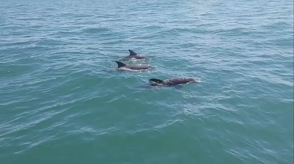 We have tons of fish action around the back bay waters right now like big schools of jack crevalle and ladyfish that have the local dolphins working in big teams to school up these aggressive fish and feed heavily on them! It makes a great view from our dolphin cruise big blue boat. Plus, occasionally they will even play ‘catch’ with their caught fish to teach the juvenile dolphins how to better utilize their sonar and learn to hunt the fish more effectively.