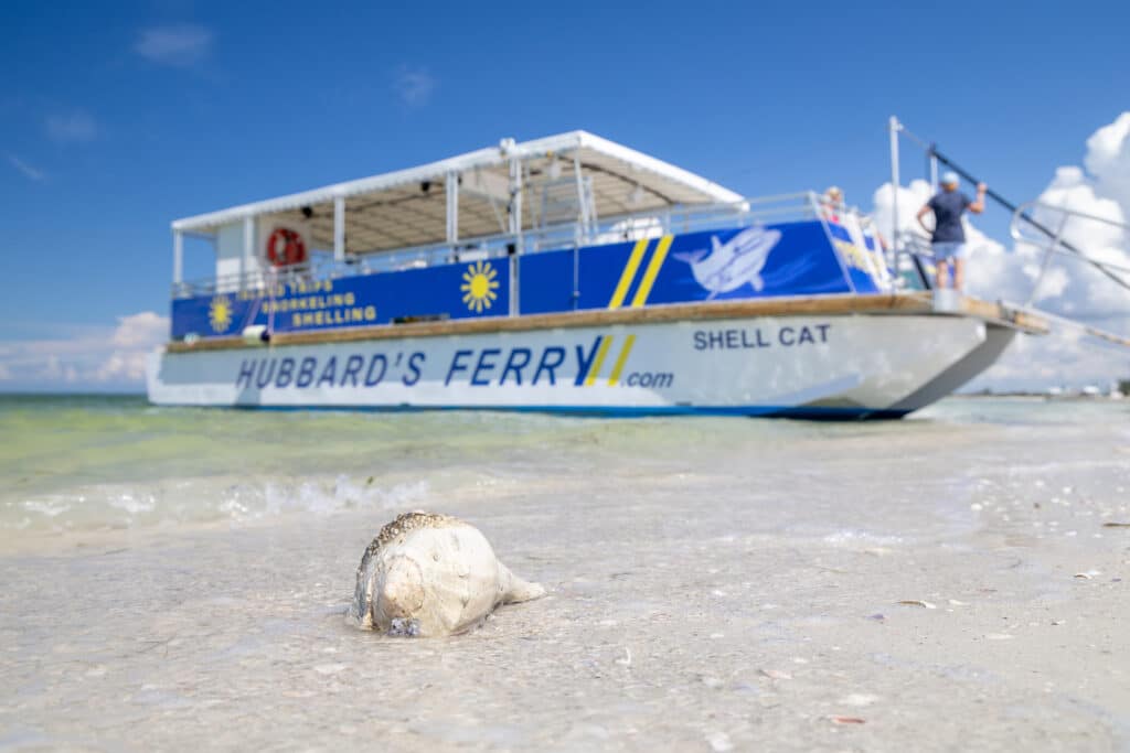 The ShellCat 49′Â is our Hubbard’s Custom Built catamaran. Built with an open-air spacious deck featuring bench and bleacher style seating for up to 49 people. Designed to offer a full 360-degree view, you’ll never miss seeing the next dolphin jumping out of the water, or get up and close to a manatee and it’s babies swimming under the boat. This boat also has a walk-in style bathroom at the stern.